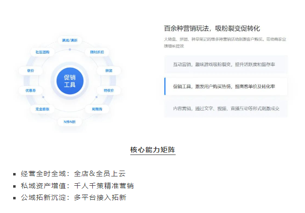 微盟智慧零售解決方案,通過(guò)門(mén)店數(shù)字化、導(dǎo)購(gòu)數(shù)字化、營(yíng)銷(xiāo)數(shù)字化、會(huì)員數(shù)字化等多個(gè)維度,幫助企業(yè)實(shí)現(xiàn)全時(shí)全域經(jīng)營(yíng),構(gòu)建私域資產(chǎn),加速零售企業(yè)數(shù)字化升級(jí)。