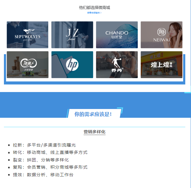 微盟微商城是全渠道小程序電商解決方案,商家可利用統(tǒng)一后臺(tái)開(kāi)通、管理和經(jīng)營(yíng)微信、QQ、支付寶、百度、小紅書(shū)等渠道店鋪,實(shí)現(xiàn)流量沉淀、轉(zhuǎn)化變現(xiàn)、粘性強(qiáng)化和裂變?cè)鲩L(zhǎng)的全流程,以私域長(zhǎng)期經(jīng)營(yíng)帶動(dòng)品牌持續(xù)增長(zhǎng)。
